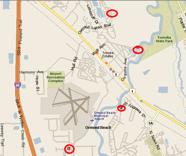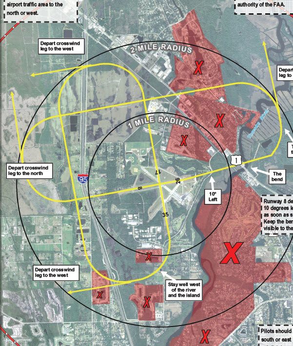 FIRST IMAGE, CIRCLES INDICATE AREAS WHERE RESIDENTS COMPLAINTS LIVE SECOND IMAGE, SHOWS RECOMMENDED OR SUGGESTED PATH FLIGHT SCHOOLS ARE REQUESTED TO FLY